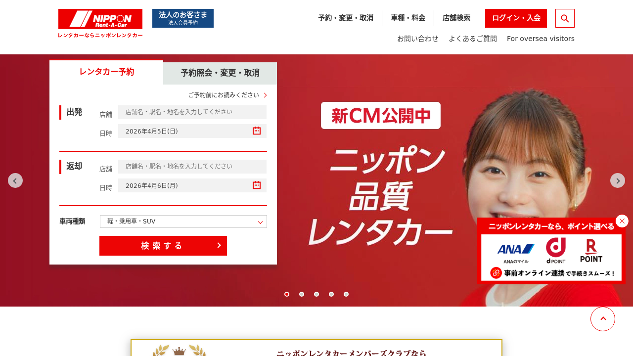 クリック数・評価をもとにしたレンタカーの人気サービスランキング。